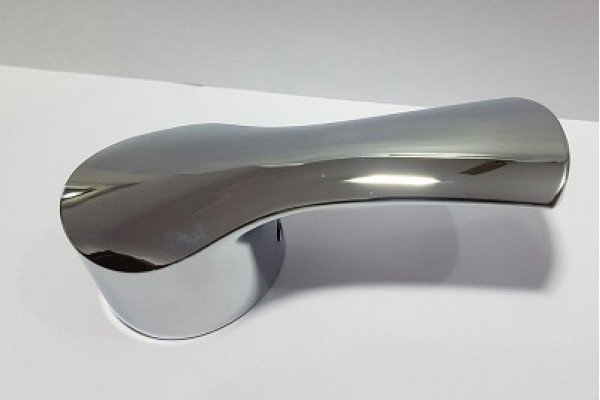 Chrome-plated plastic single-lever handle with a curved ergonomic design, offering smooth operation, secure fitting, and durable performance in sanitary applications.